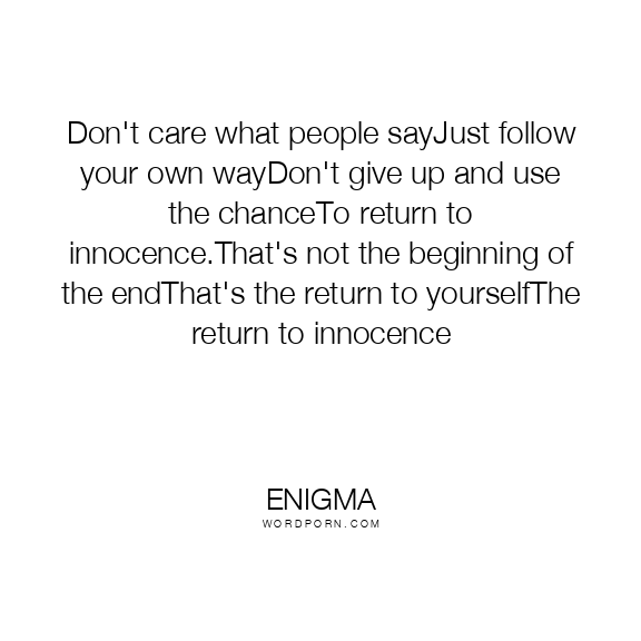 Don't care what people sayJust follow your own wayDon't give up and use the chanceTo return to innocence.That's not the beginning of the endThat's the return to yourselfThe return to innocence