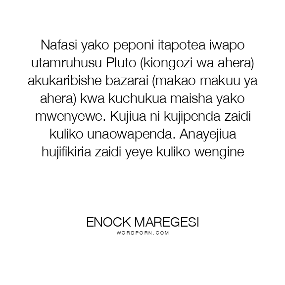 Kuwa tajiri si kazi rahisi. Ukipata milioni ya kwanza utataka nyingine kulinda hiyo ya kwanza. Ukipata ya pili utataka mbili zingine kulinda hizo mbili za kwanza, n.k. Si kazi rahisi. Si kama unavyofikiria. Utajiri haujanipa furaha. Umenipa uhuru. Ndugu zangu ni maskini wa kutupwa. Ningependa kuishi kama maskini mwenye pesa nyingi