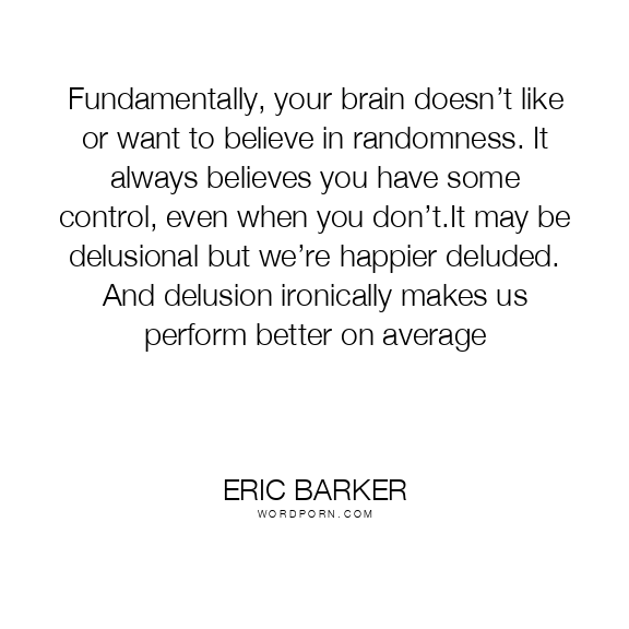Fundamentally, your brain doesn’t like or want to believe in randomness. It always believes you have some control, even when you don’t.It may be delusional but we’re happier deluded. And delusion ironically makes us perform better on average