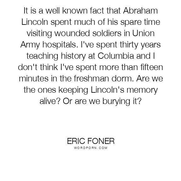 It is a well known fact that Abraham Lincoln spent much of his spare time visiting wounded soldiers in Union Army hospitals. I've spent thirty years teaching history at Columbia and I don't think I've spent more than fifteen minutes in the freshman dorm. Are we the ones keeping Lincoln's memory alive? Or are we burying it?