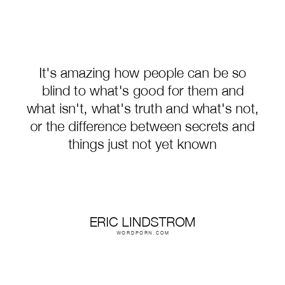 It's amazing how people can be so blind to what's good for them and what isn't, what's truth and what's not, or the difference between secrets and things just not yet known
