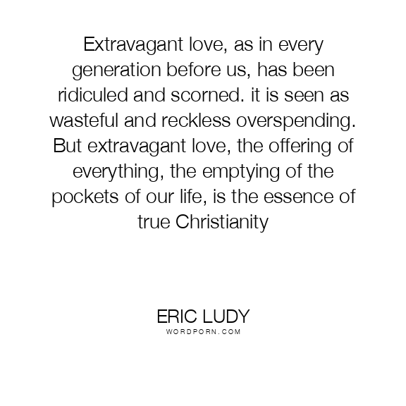 Extravagant love, as in every generation before us, has been ridiculed and scorned. it is seen as wasteful and reckless overspending. But extravagant love, the offering of everything, the emptying of the pockets of our life, is the essence of true Christianity