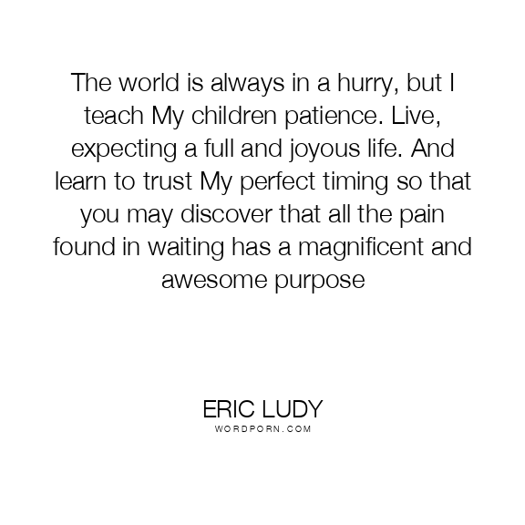 The world is always in a hurry, but I teach My children patience. Live, expecting a full and joyous life. And learn to trust My perfect timing so that you may discover that all the pain found in waiting has a magnificent and awesome purpose