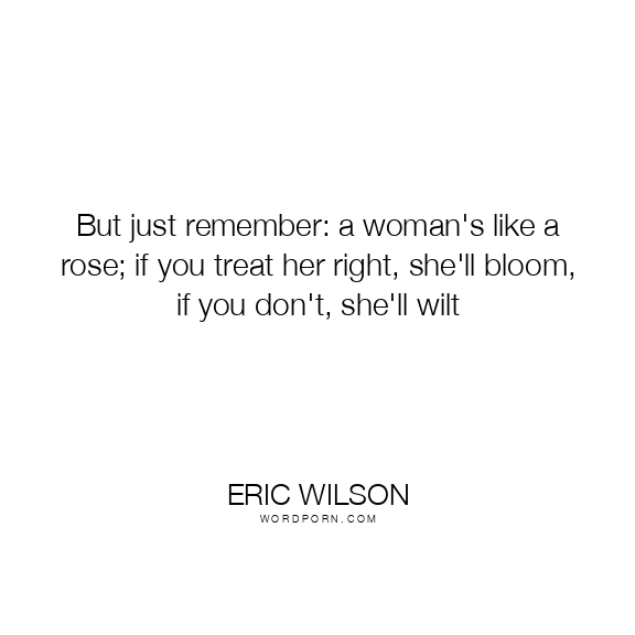 But just remember: a woman's like a rose; if you treat her right, she'll bloom, if you don't, she'll wilt