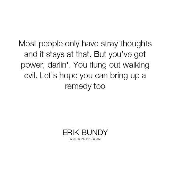 Most people only have stray thoughts and it stays at that. But you’ve got power, darlin'. You flung out walking evil. Let's hope you can bring up a remedy too