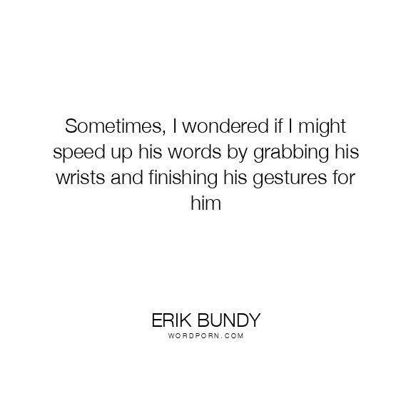 Sometimes, I wondered if I might speed up his words by grabbing his wrists and finishing his gestures for him
