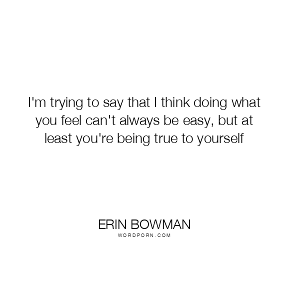 I'm trying to say that I think doing what you feel can't always be easy, but at least you're being true to yourself