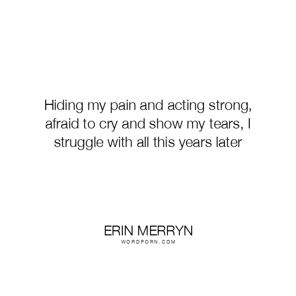 Erin Merryn quote. Hiding my pain and acting strong, afraid to cry and show my tears, I struggle with all this years later