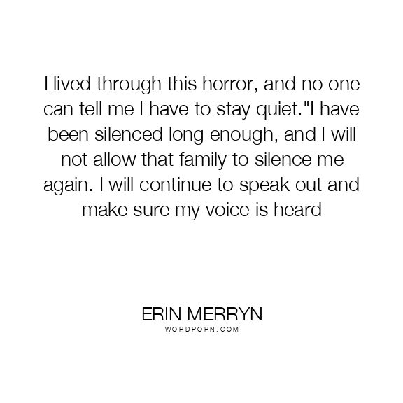 Erin Merryn quote. I lived through this horror, and no one can tell me I have to stay quiet.