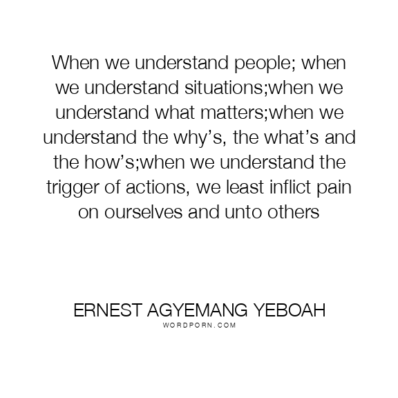 When we understand people; when we understand situations;when we understand what matters;when we understand the why’s, the what’s and the how’s;when we understand the trigger of actions, we least inflict pain on ourselves and unto others