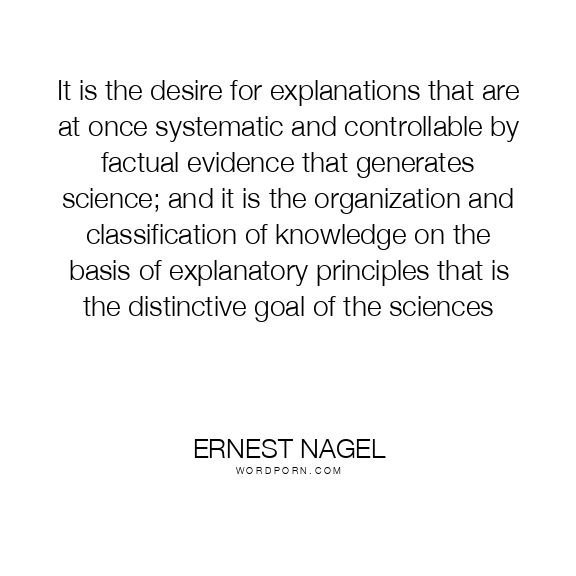 It is the desire for explanations that are at once systematic and controllable by factual evidence that generates science; and it is the organization and classification of knowledge on the basis of explanatory principles that is the distinctive goal of the sciences