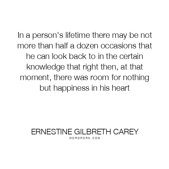 In a person's lifetime there may be not more than half a dozen occasions that he can look back to in the certain knowledge that right then, at that moment, there was room for nothing but happiness in his heart