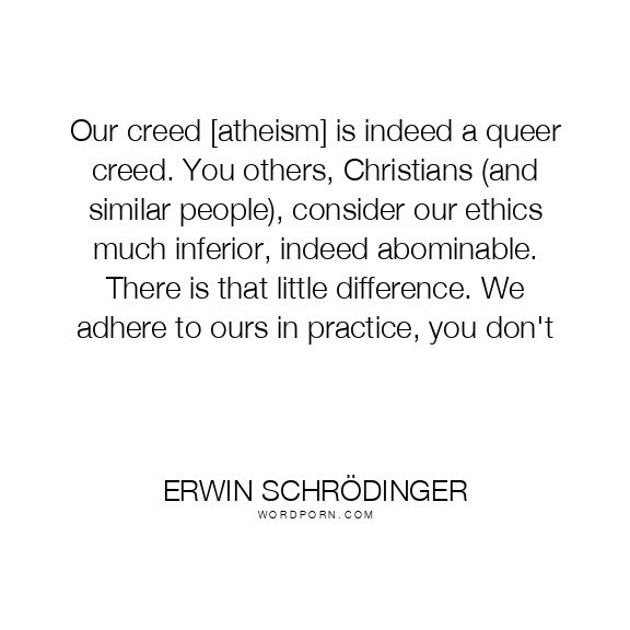 Our creed [atheism] is indeed a queer creed. You others, Christians (and similar people), consider our ethics much inferior, indeed abominable. There is that little difference. We adhere to ours in practice, you don't