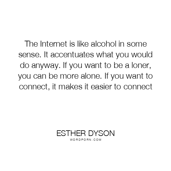 The Internet is like alcohol in some sense. It accentuates what you would do anyway. If you want to be a loner, you can be more alone. If you want to connect, it makes it easier to connect
