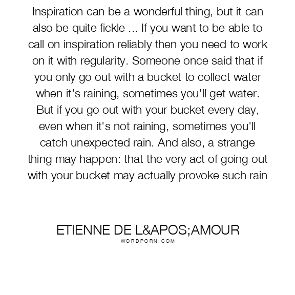 Inspiration can be a wonderful thing, but it can also be quite fickle ... If you want to be able to call on inspiration reliably then you need to work on it with regularity. Someone once said that if you only go out with a bucket to collect water when it's raining, sometimes you'll get water. But if you go out with your bucket every day, even when it's not raining, sometimes you'll catch unexpected rain. And also, a strange thing may happen: that the very act of going out with your bucket may actually provoke such rain
