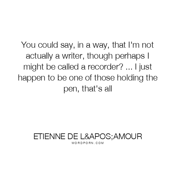 You could say, in a way, that I'm not actually a writer, though perhaps I might be called a recorder? ... I just happen to be one of those holding the pen, that's all