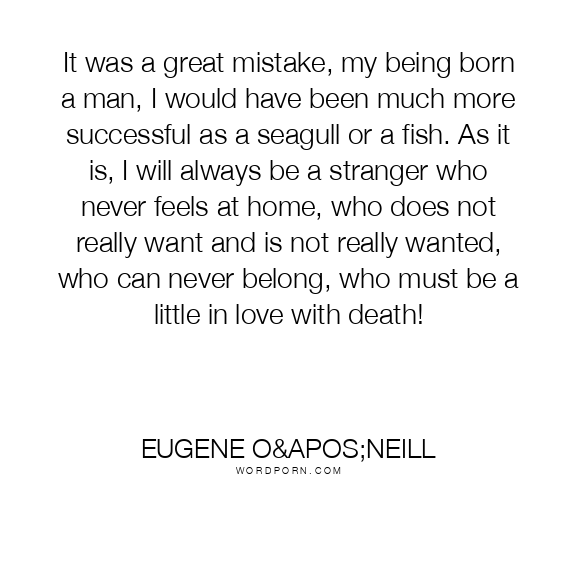 It was a great mistake, my being born a man, I would have been much more successful as a seagull or a fish. As it is, I will always be a stranger who never feels at home, who does not really want and is not really wanted, who can never belong, who must be a little in love with death!