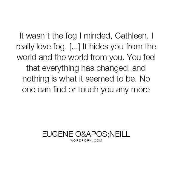 It wasn't the fog I minded, Cathleen. I really love fog. [...] It hides you from the world and the world from you. You feel that everything has changed, and nothing is what it seemed to be. No one can find or touch you any more