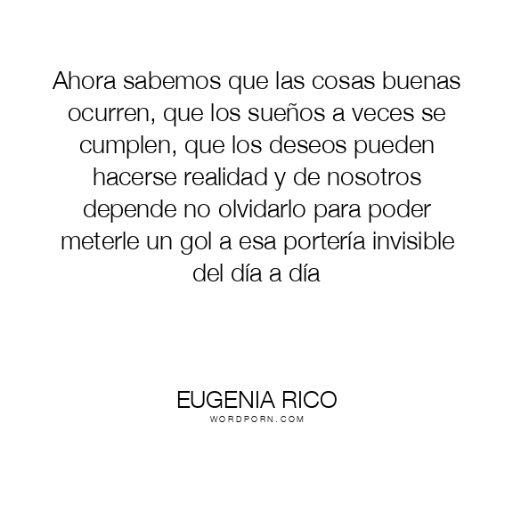 Ahora sabemos que las cosas buenas ocurren, que los sueños a veces se cumplen, que los deseos pueden hacerse realidad y de nosotros depende no olvidarlo para poder meterle un gol a esa portería invisible del día a día