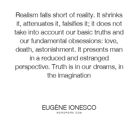 Realism falls short of reality. It shrinks it, attenuates it, falsifies it; it does not take into account our basic truths and our fundamental obsessions: love, death, astonishment. It presents man in a reduced and estranged perspective. Truth is in our dreams, in the imagination