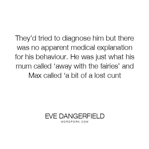 They’d tried to diagnose him but there was no apparent medical explanation for his behaviour. He was just what his mum called ‘away with the fairies’ and Max called ‘a bit of a lost cunt