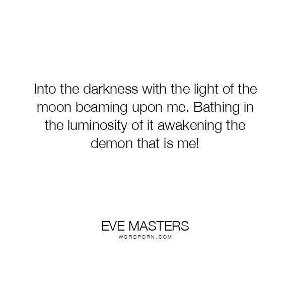 Copy Image Into the darkness with the light of the moon beaming upon me. Bathing in the luminosity of it awakening the demon that is me! Moms Typewriter A A SAVE THIS IMAGE