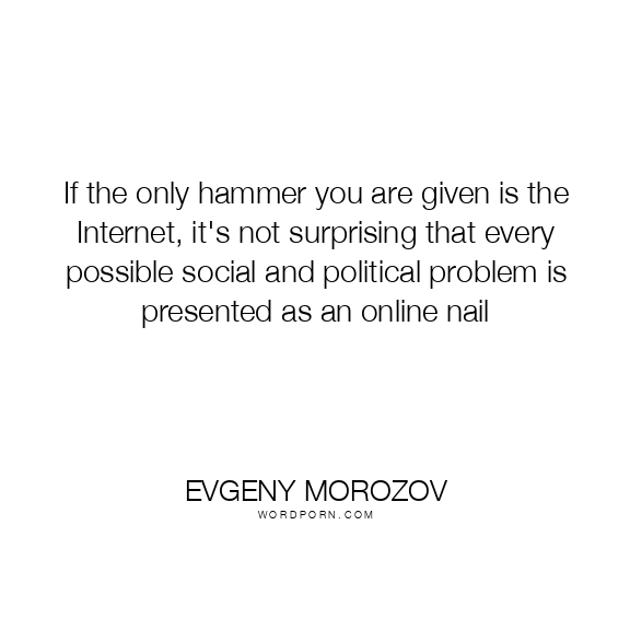 If the only hammer you are given is the Internet, it's not surprising that every possible social and political problem is presented as an online nail