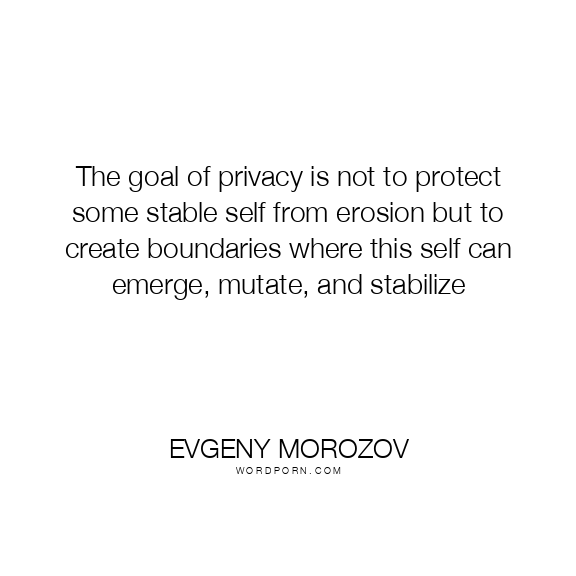 The goal of privacy is not to protect some stable self from erosion but to create boundaries where this self can emerge, mutate, and stabilize