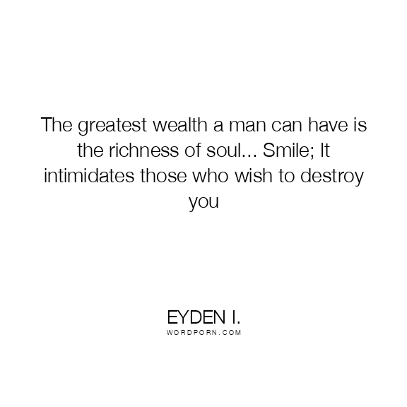 The greatest wealth a man can have is the richness of soul... Smile; It intimidates those who wish to destroy you