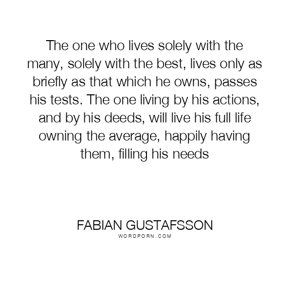 The one who lives solely with the many, solely with the best, lives only as briefly as that which he owns, passes his tests. The one living by his actions, and by his deeds, will live his full life owning the average, happily having them, filling his needs