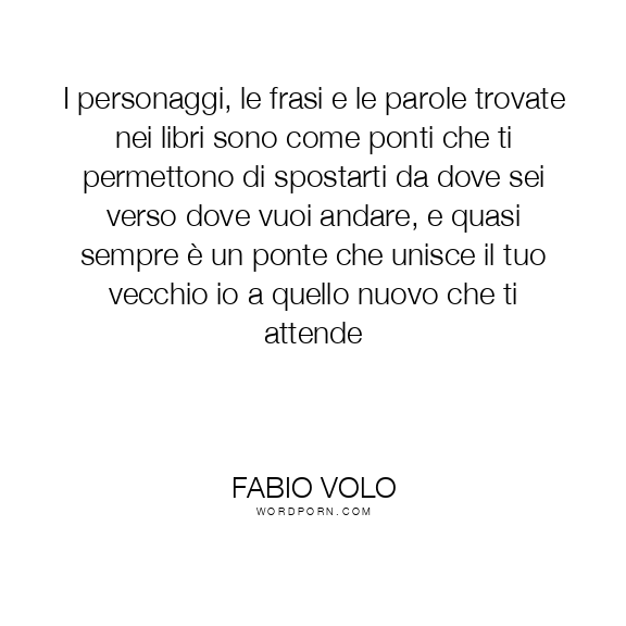 I personaggi, le frasi e le parole trovate nei libri sono come ponti che ti permettono di spostarti da dove sei verso dove vuoi andare, e quasi sempre è un ponte che unisce il tuo vecchio io a quello nuovo che ti attende