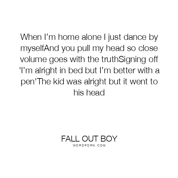 When I’m home alone I just dance by myselfAnd you pull my head so close volume goes with the truthSigning off 'I’m alright in bed but I’m better with a pen'The kid was alright but it went to his head