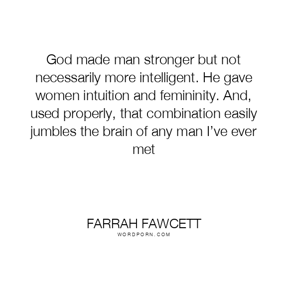God made man stronger but not necessarily more intelligent. He gave women intuition and femininity. And, used properly, that combination easily jumbles the brain of any man I’ve ever met