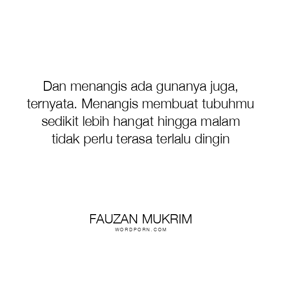 Copy Image Dan menangis ada gunanya juga, ternyata. Menangis membuat tubuhmu sedikit lebih hangat hingga malam tidak perlu terasa terlalu dingin Moms Typewriter A A SAVE THIS IMAGE