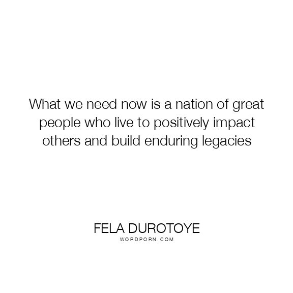 What we need now is a nation of great people who live to positively impact others and build enduring legacies