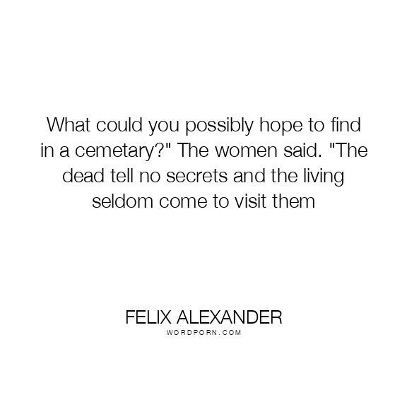 What could you possibly hope to find in a cemetary?" The women said. "The dead tell no secrets and the living seldom come to visit them