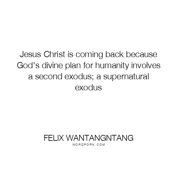 Copy Image Jesus Christ is coming back because God's divine plan for humanity involves a second exodus; a supernatural exodus Moms Typewriter A A SAVE THIS IMAGE