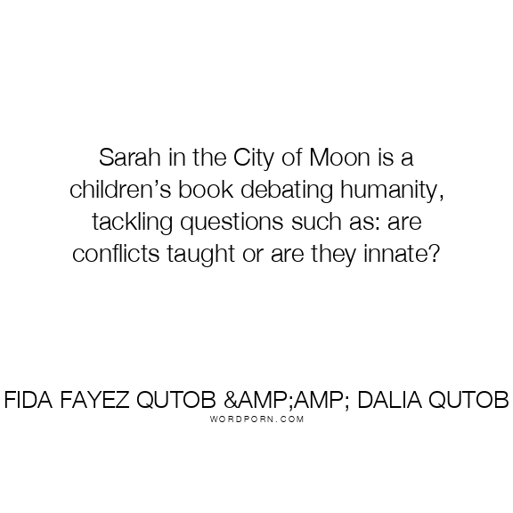 Sarah in the City of Moon is a children’s book debating humanity, tackling questions such as: are conflicts taught or are they innate?