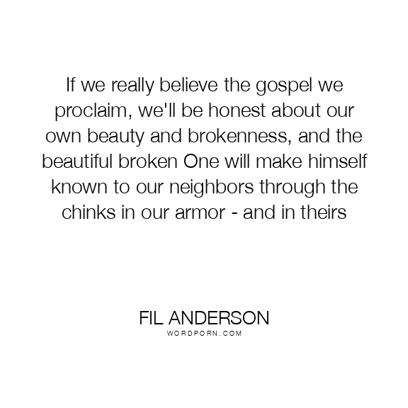 If we really believe the gospel we proclaim, we'll be honest about our own beauty and brokenness, and the beautiful broken One will make himself known to our neighbors through the chinks in our armor - and in theirs