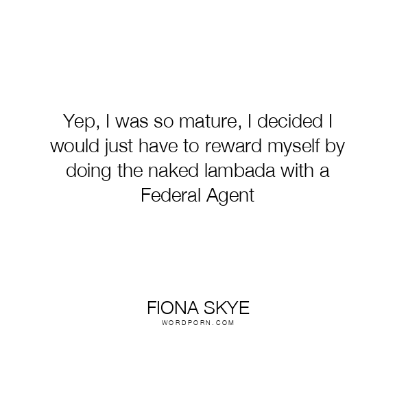 Yep, I was so mature, I decided I would just have to reward myself by doing the naked lambada with a Federal Agent