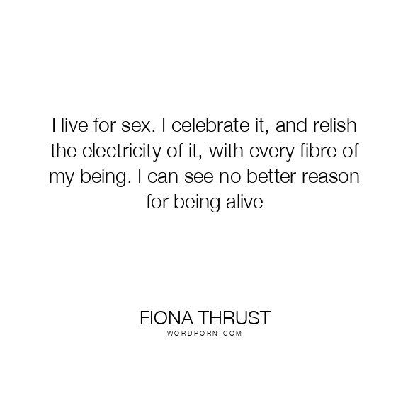 I live for sex. I celebrate it, and relish the electricity of it, with every fibre of my being. I can see no better reason for being alive