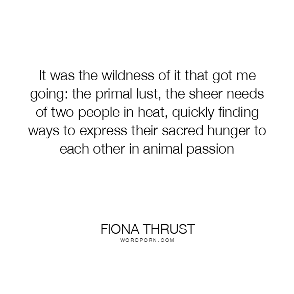 It was the wildness of it that got me going: the primal lust, the sheer needs of two people in heat, quickly finding ways to express their sacred hunger to each other in animal passion
