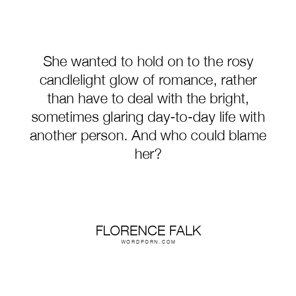 She wanted to hold on to the rosy candlelight glow of romance, rather than have to deal with the bright, sometimes glaring day-to-day life with another person. And who could blame her?