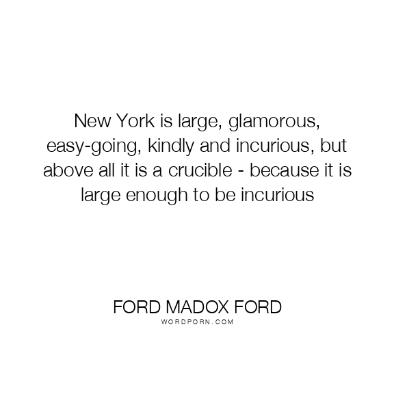 New York is large, glamorous, easy-going, kindly and incurious, but above all it is a crucible - because it is large enough to be incurious