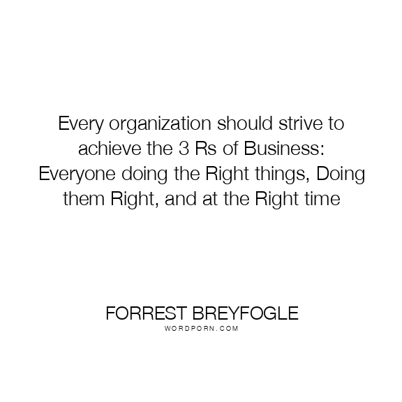 Copy Image Every organization should strive to achieve the 3 Rs of Business: Everyone doing the Right things, Doing them Right, and at the Right time Moms Typewriter A A SAVE THIS IMAGE