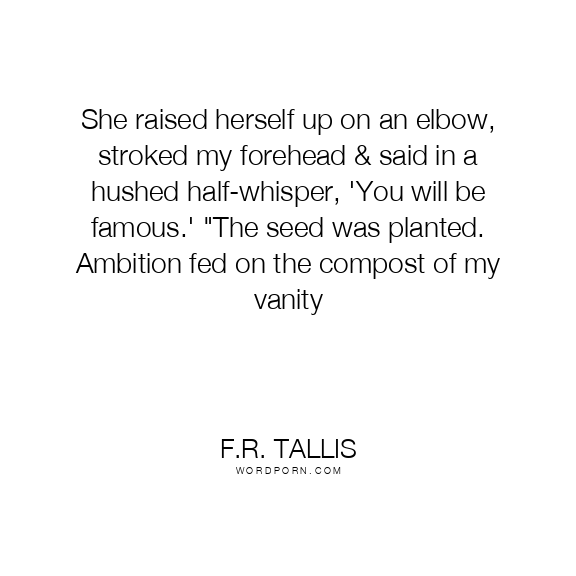 She raised herself up on an elbow, stroked my forehead & said in a hushed half-whisper, 'You will be famous.' "The seed was planted. Ambition fed on the compost of my vanity