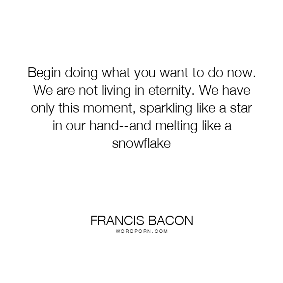 Begin doing what you want to do now. We are not living in eternity. We have only this moment, sparkling like a star in our hand--and melting like a snowflake