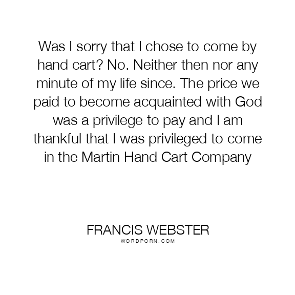 Was I sorry that I chose to come by hand cart? No. Neither then nor any minute of my life since. The price we paid to become acquainted with God was a privilege to pay and I am thankful that I was privileged to come in the Martin Hand Cart Company