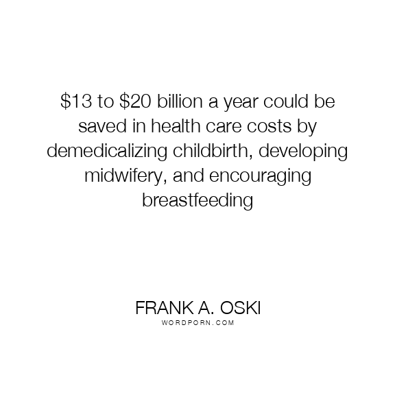 $13 to $20 billion a year could be saved in health care costs by demedicalizing childbirth, developing midwifery, and encouraging breastfeeding