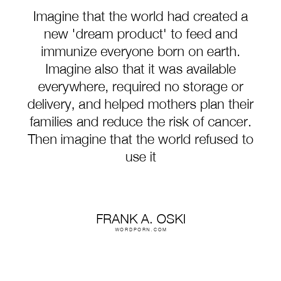 Imagine that the world had created a new 'dream product' to feed and immunize everyone born on earth. Imagine also that it was available everywhere, required no storage or delivery, and helped mothers plan their families and reduce the risk of cancer. Then imagine that the world refused to use it